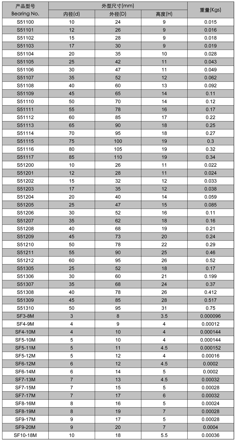 • 不銹鋼推力球軸承